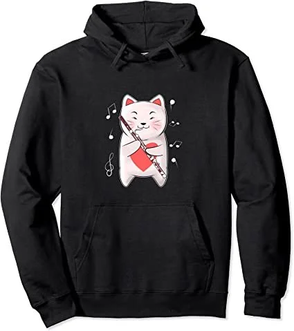 Pink Cat Playing Bassoon Hoodie from Amazon