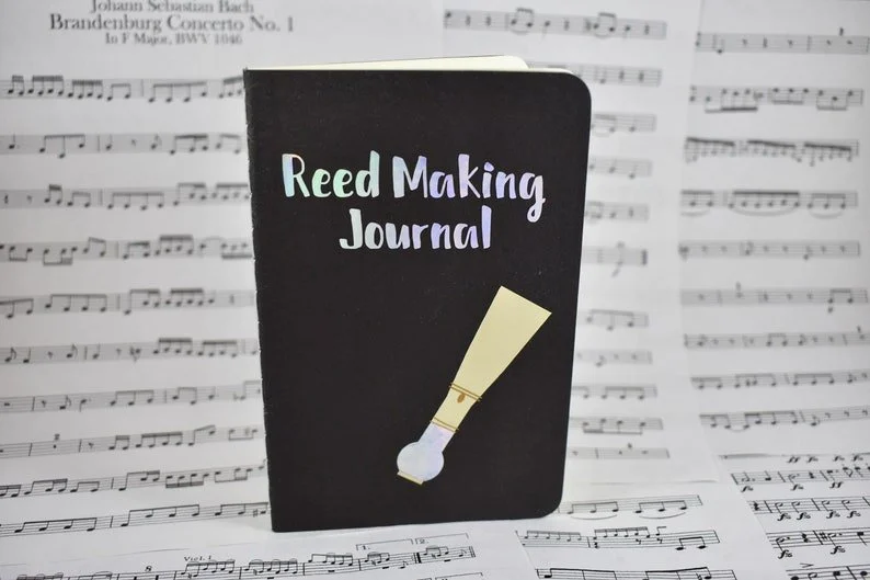Keep notes about your reeds in style! This notebook is the perfect gift for any new or seasoned oboe reed maker.