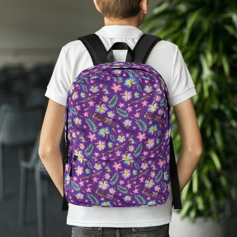 If you’re looking for a practical AND cute gift, this medium size backpack is just what you need for carrying your ipad or music to practice! Bassoons, Contra Bassoons and reeds along with tropical flowers on a purple background. The notes coming out of the top of the bassoon are an excerpt from The Sorcerer's Apprentice.